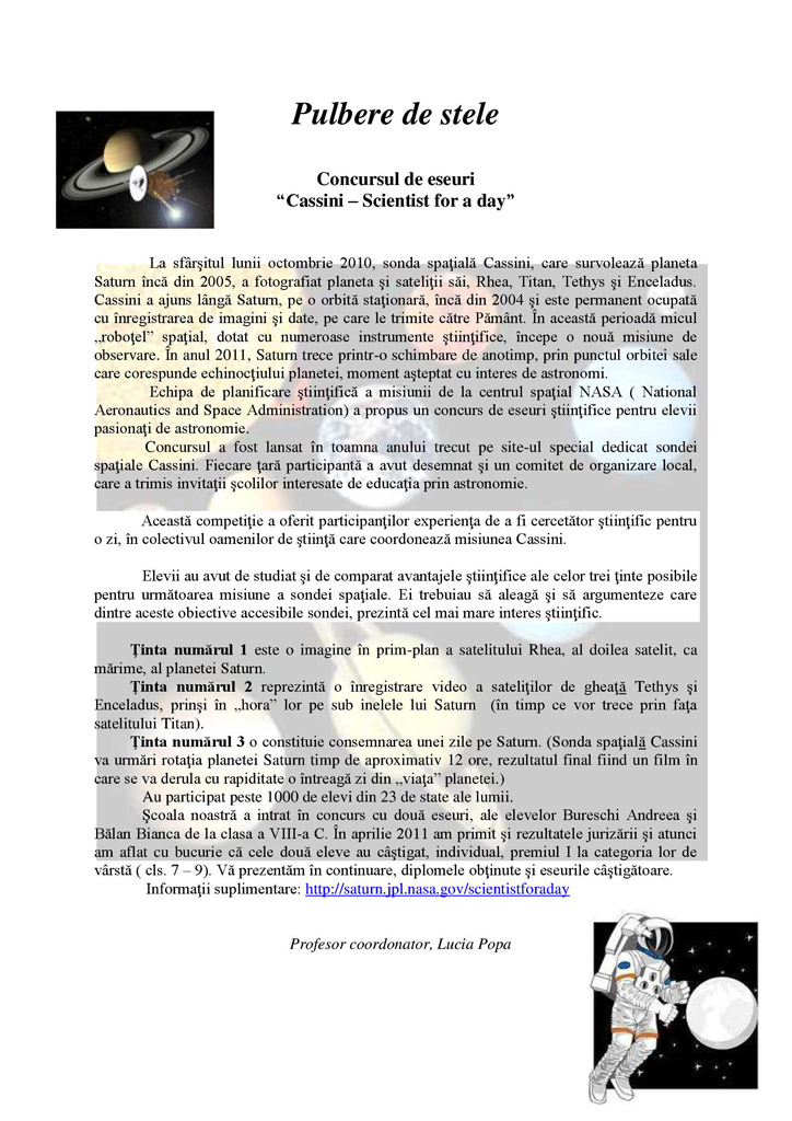 Rezultatele obţinute la Olimpicii Cunoaşterii, Micul Gates, Eurojunior, Canguraşul, Cangurul matematic, Smart si toate celelalte concursuri ne fac să fim mândri...
