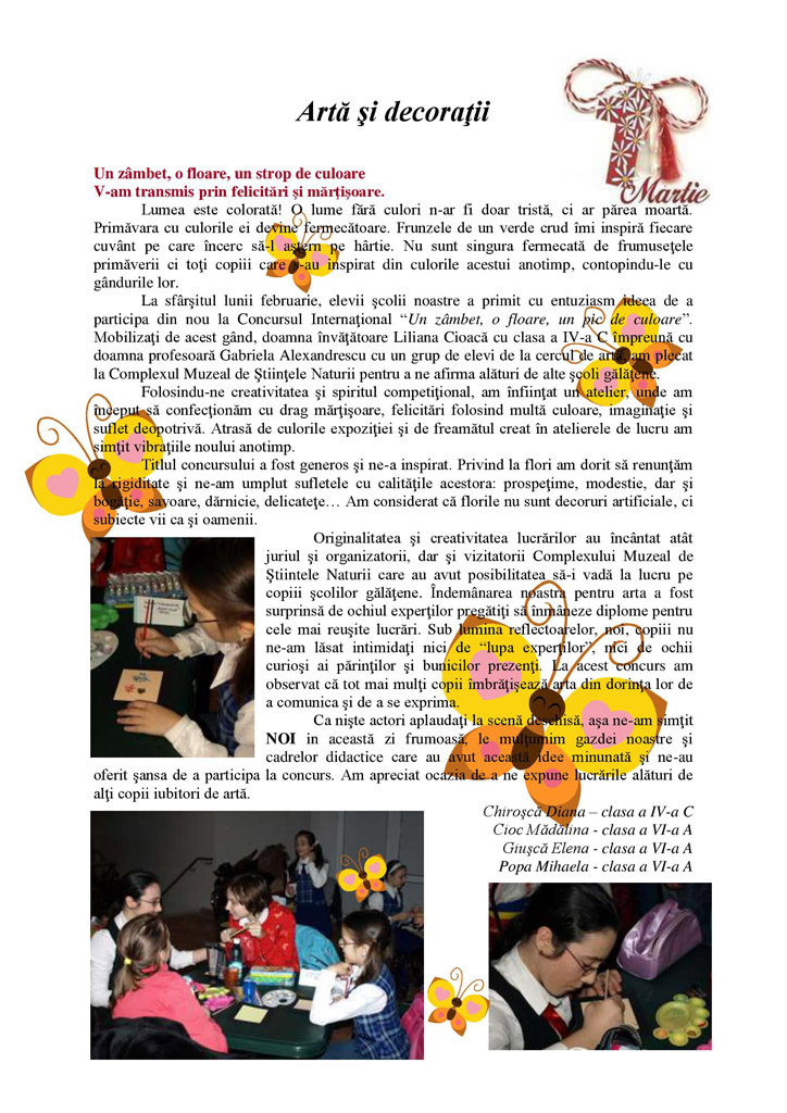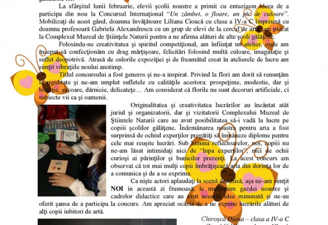 Ne bucură să imortalizăm toate realizările noastre sau momentele în care ne dezvoltăm talentele artistice sau cultivăm dragostea pentru natură sau facem schimb de experienţă...