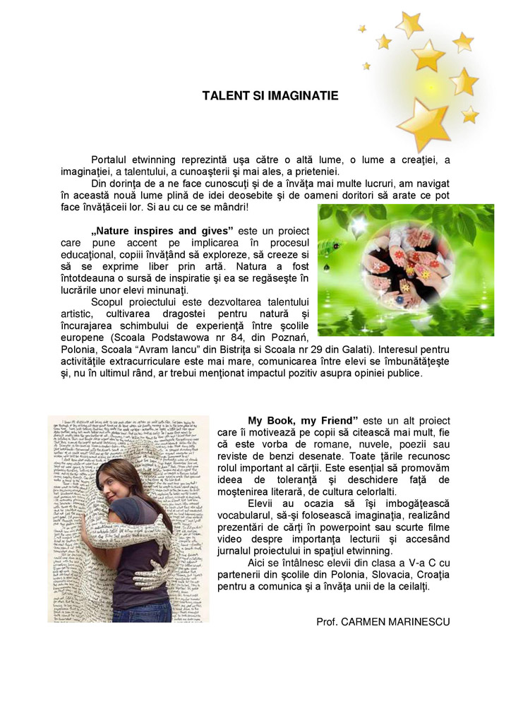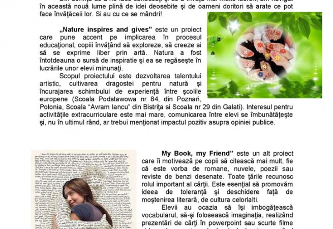 Ne bucură să imortalizăm toate realizările noastre sau momentele în care ne dezvoltăm talentele artistice sau cultivăm dragostea pentru natură sau facem schimb de experienţă...